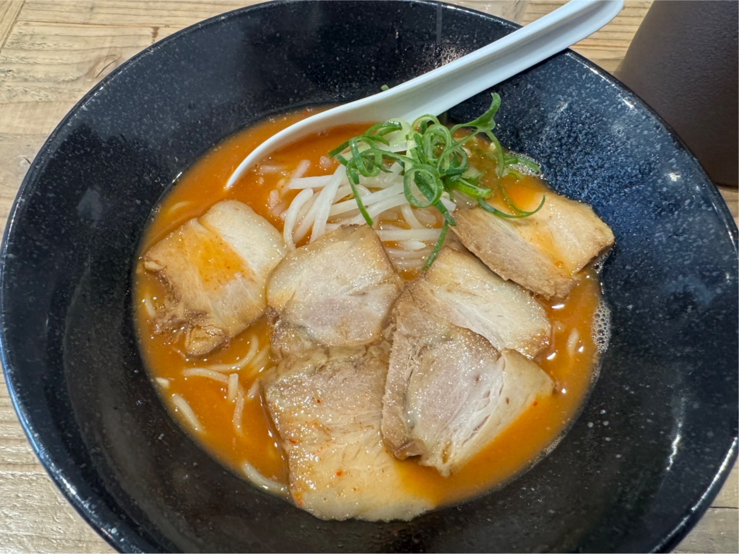 ピリッと辛い自家製ヤンニョンが効いたスープに、丁寧に煮込まれたチャーシューがたまらない一杯!
