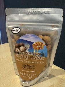 ハワイらしいパッケージで、マカダミアナッツにハワイ産のはちみつを使ってローストされている商品とのことです。