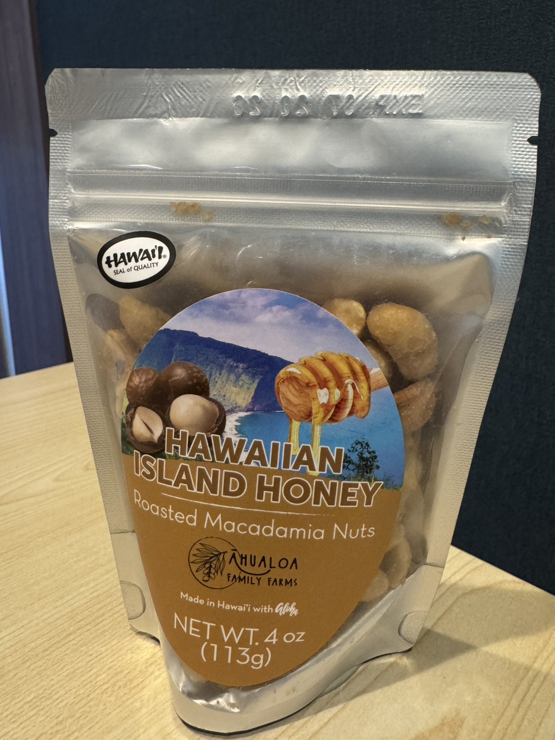 今回いただいたのは、ハワイ産のハワイアンアイランドハニー ローストマカダミアナッツです。