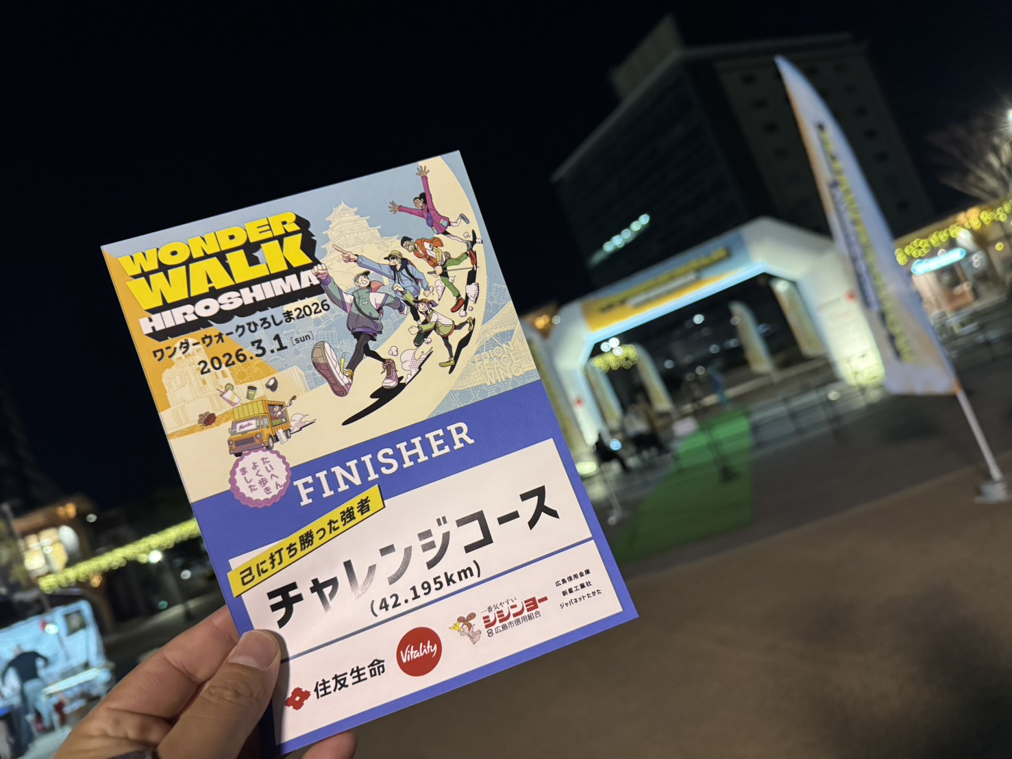 先日、広島ワンダーウォークに参加し、42.195kmを無事完歩いたしました。