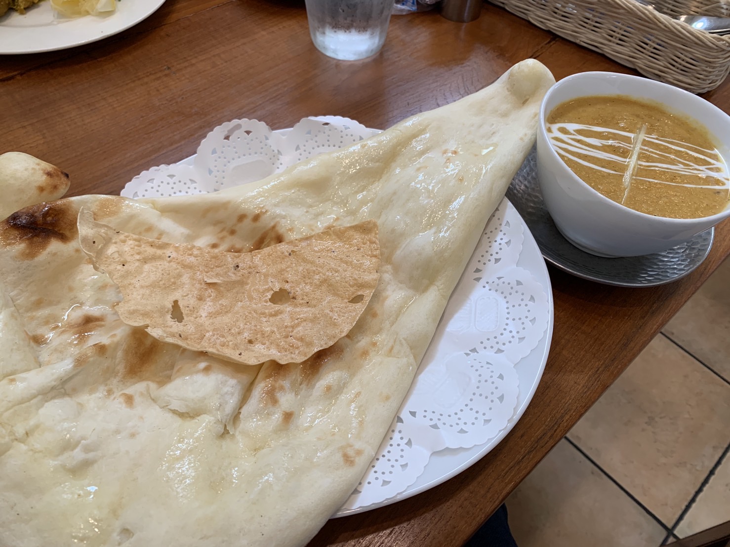 厨房のすぐ前がガラス張りなのでナンを焼く窯が見える席で眺めながら待つのが個人的には大好きで、本日もその席に案内してもらいました😊